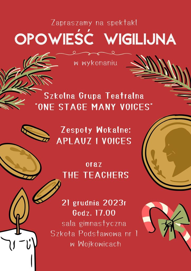 SERDECZNIE ZAPRASZAMY na przygotowany przez nas spektakl ze świąteczną oprawą muzyczną, a całość w wykonaniu aktorów i wokalistów z naszej szkoły!